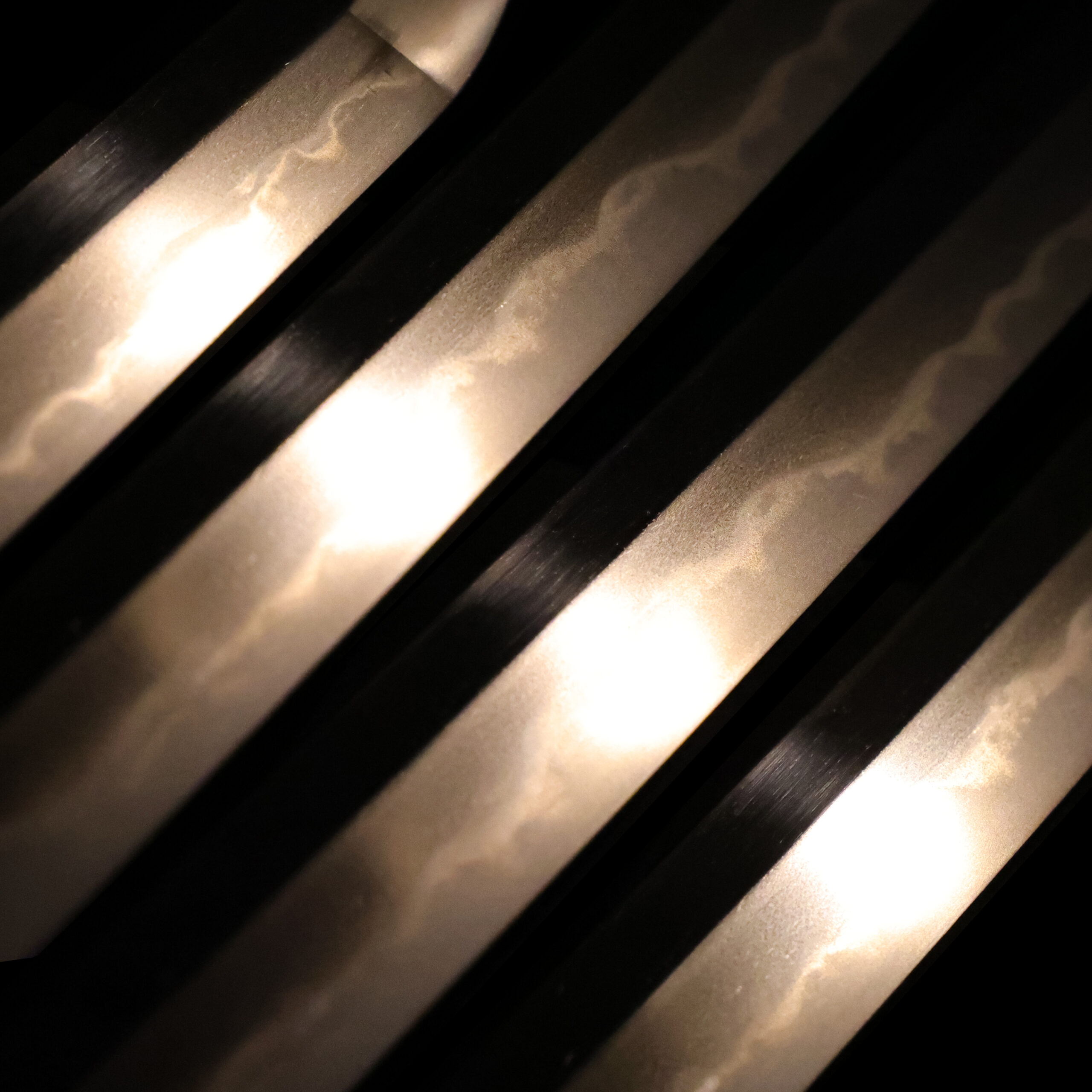 visible steel surface pattern created by folding and hammering during forging process