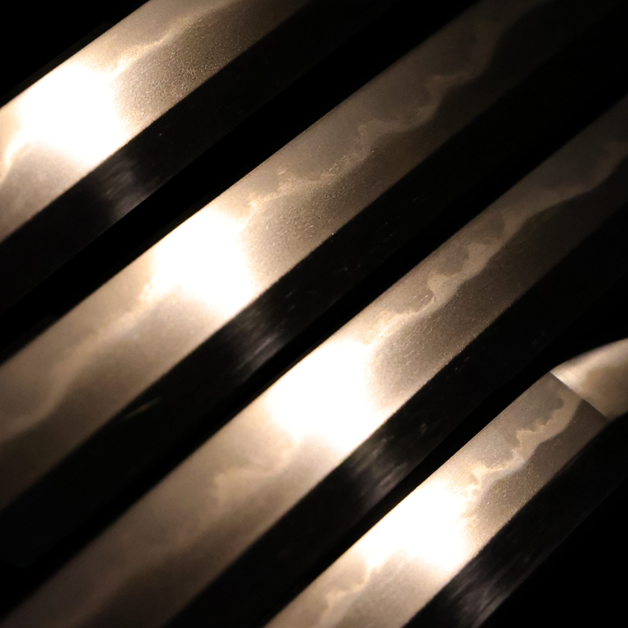 visible steel surface pattern created by folding and hammering during forging process