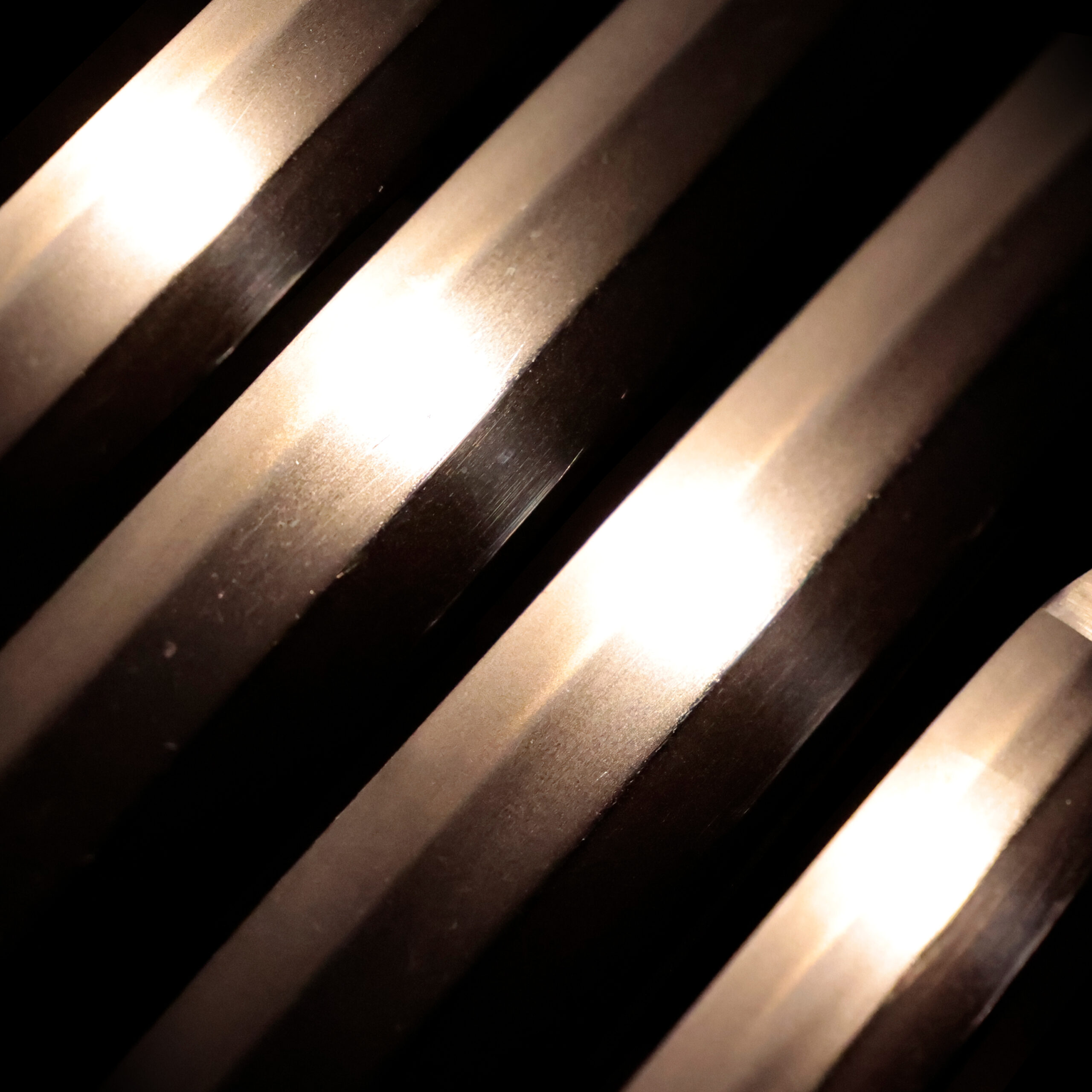 The crystalline structure which forms along the cutting edge of a blade as a result of the hardening process
